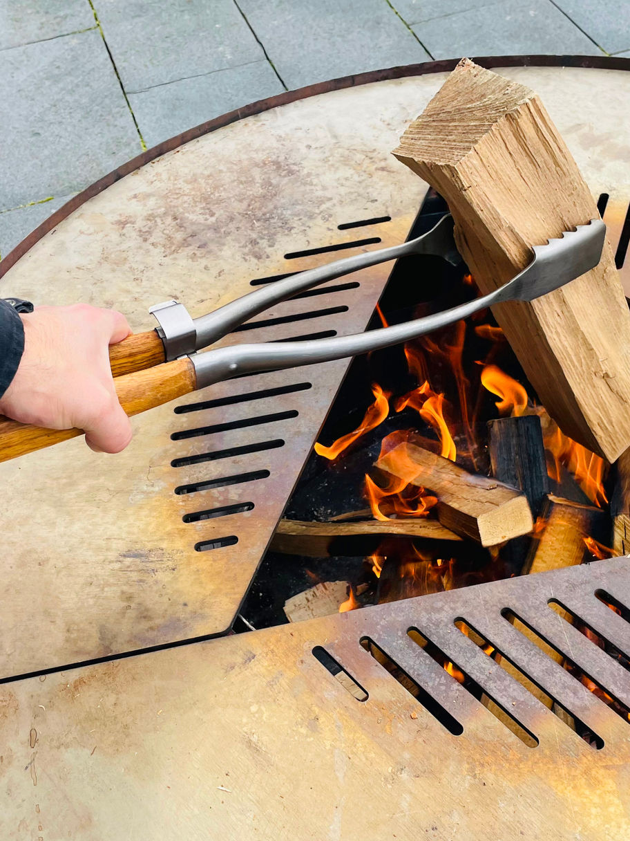 Die Gartenfeuer Zange mit Holzgriff ist das perfekte Werkzeug für alle, die bequem und effizient Brennholz bewegen und platzieren möchten. Der ergonomische Holzgriff sorgt für einen angenehmen und rutschfesten Griff, während die robusten Stahlbacken das Holz sicher halten. Die lange Form ermöglicht es, das Holz bequem zu bewegen, ohne sich bücken zu müssen. Ideal für den Einsatz im Freien oder im Kaminzimmer. Mit dieser Zange kann man Brennholz sicher und einfach platzieren, um das Feuer in Gang zu halten.